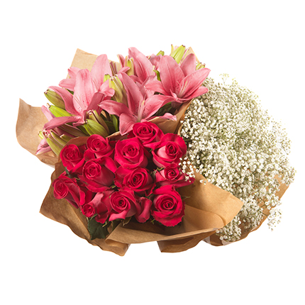 Red Roses, Lilies, Gypsophila